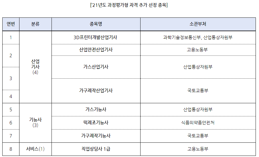 과정평가형자격증이 포함되기엔 어려워 보인다.
