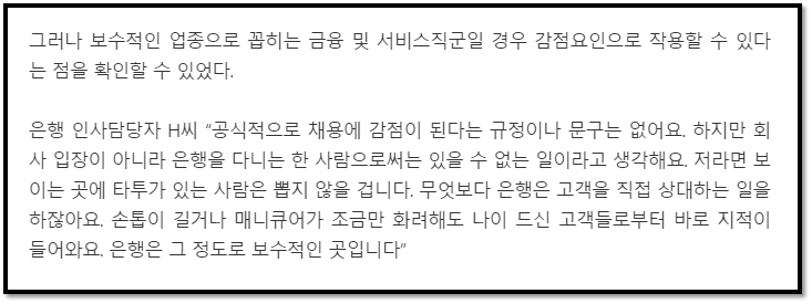 5. 입사자중에 문신있는사람이 거의 없었다.