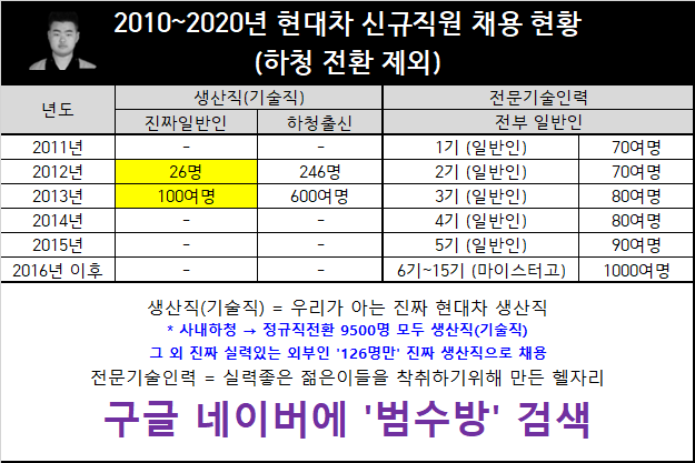 사실상 사내하청입사 = 현대차 정규직 이었다.