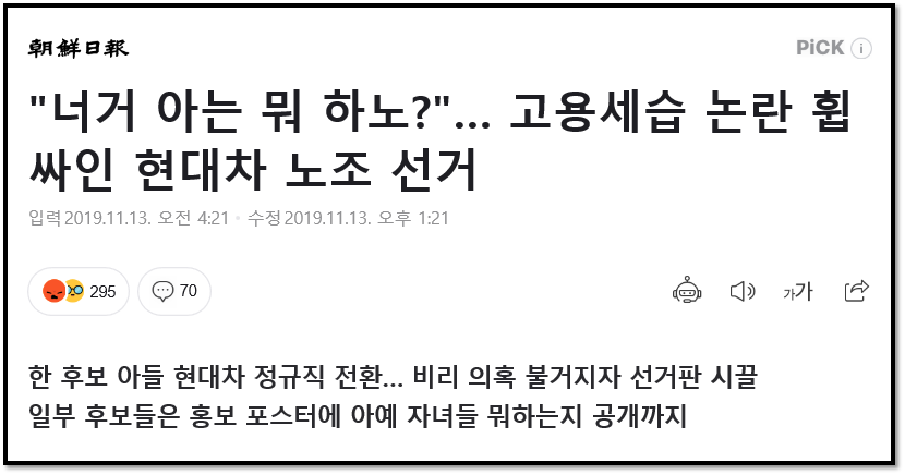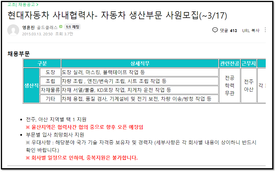이 글은 '젊은' 현대자동차 생산직의 이야기를 담은 글입니다. 모든이의 주장을 담을 수는 없습니다. 감안하고 봐주시길 바랍니다.