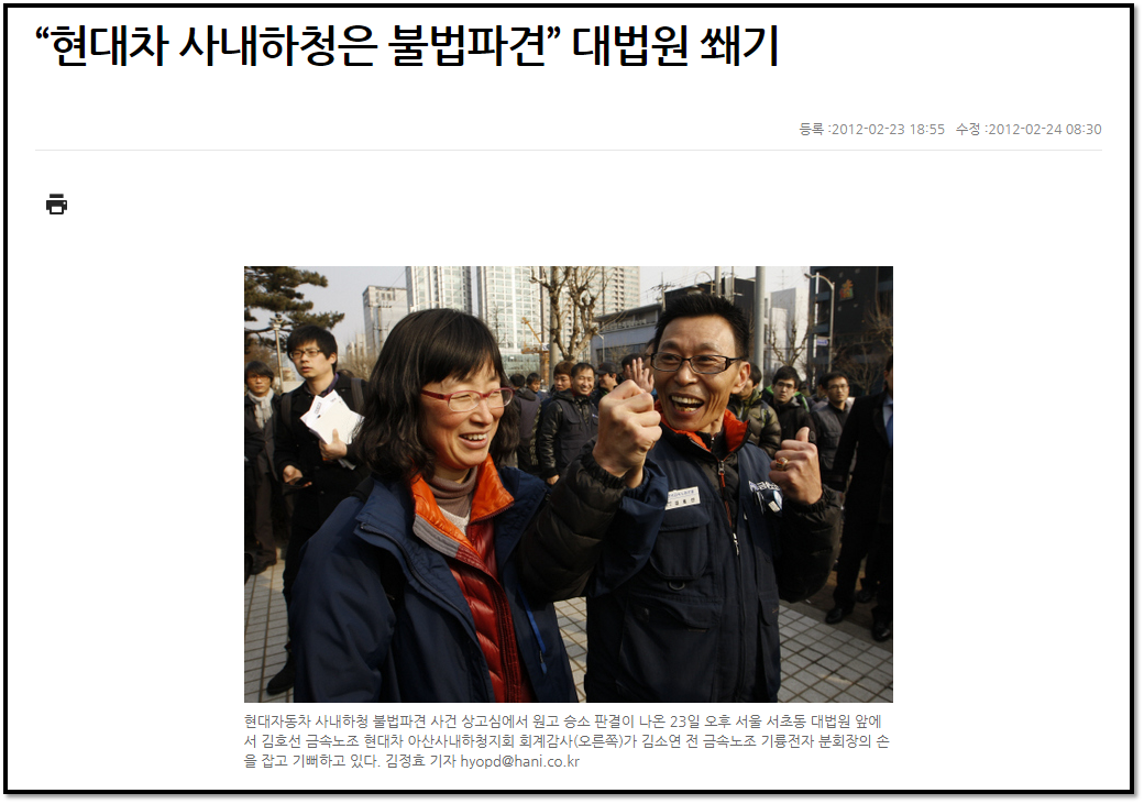 바로 현대자동차 사내하청 "불법파견" 판결이다.