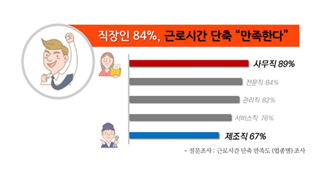 사무직은 90퍼센트 가량 만족하며