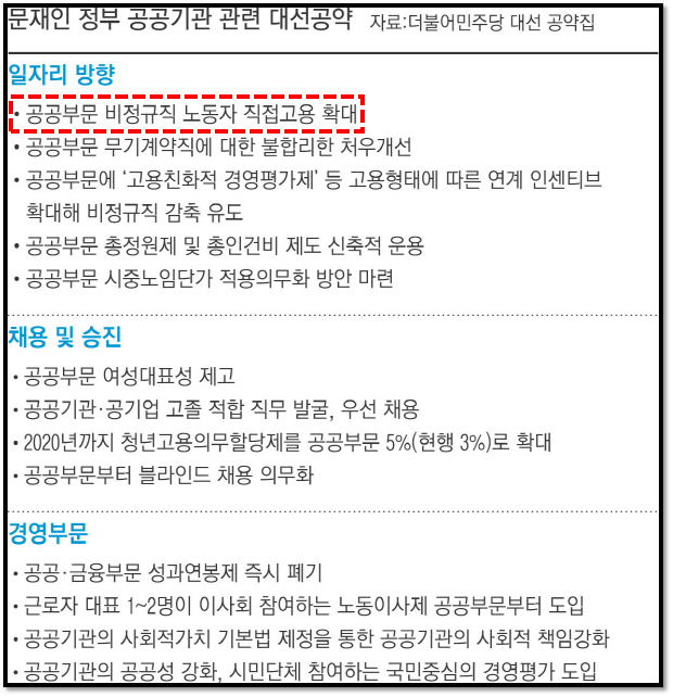정책기조에 따라 무조건 정규직화를 밀어붙이며