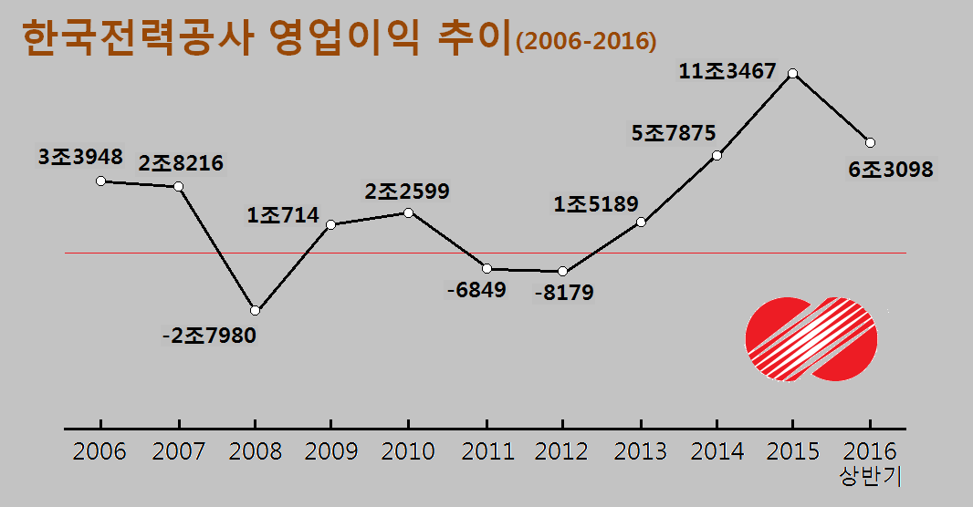 한전은 적자를 지속적으로 내는 기업이었다.