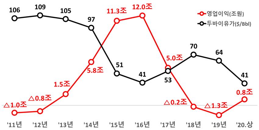 이는 역시 국제유가의 하락으로인한