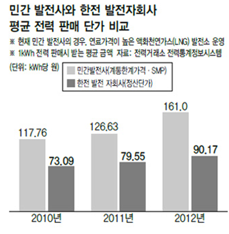 민자발전소는 전기를 생산하는대로 비싸게 팔 수 있었다.