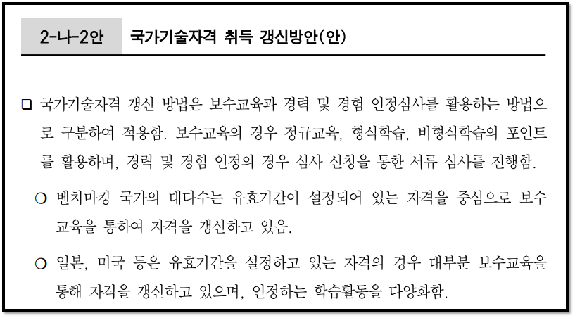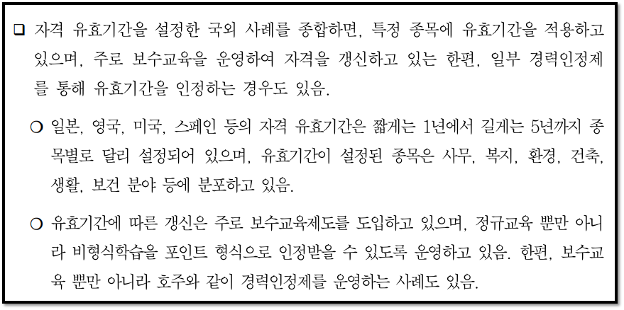결국 보수교육을 통해 갱신하는 방법을 꾀하고자한다는 결론에 이른다.