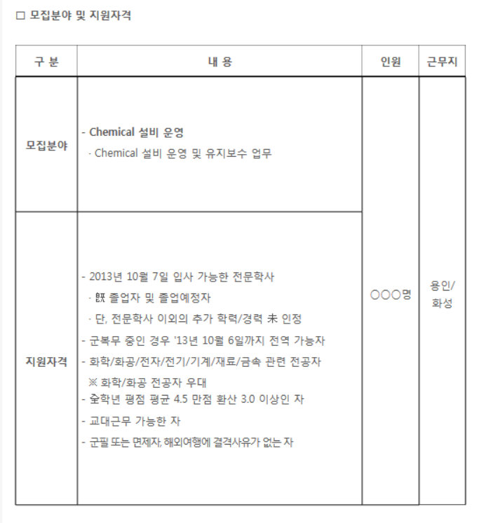심지어 케미칼과 설비를 각각 000명 뽑았었다.