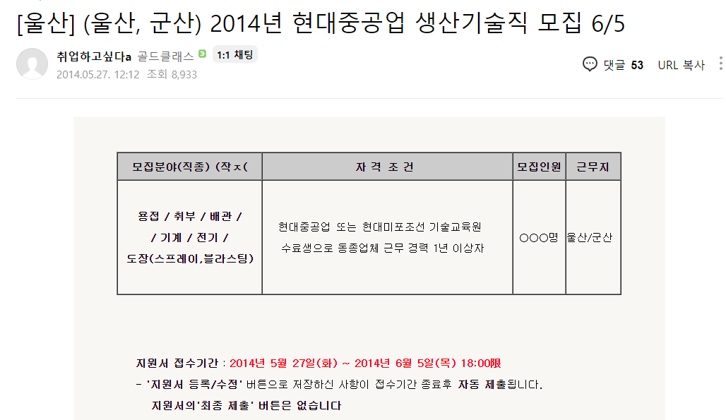 1편 "생산직 채용 황금기"는 마치겠다.