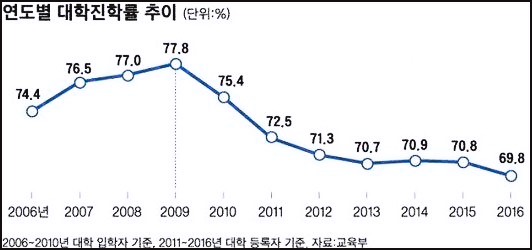 대학진학률의 정점을 찍은것은 2009년이다.