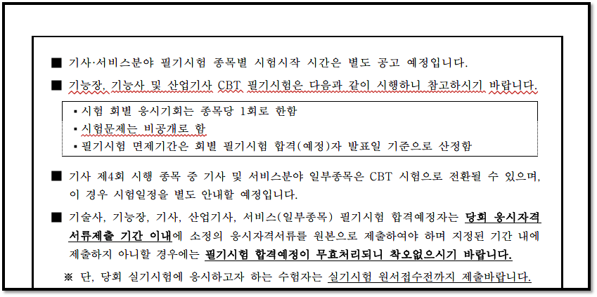 내녀 4회부터 기사시험도 CBT 시행 전환될 수 있음을 공고하고있다.