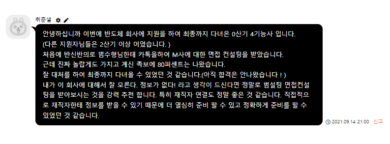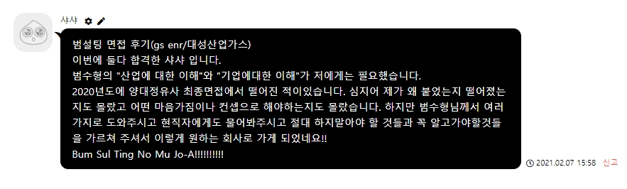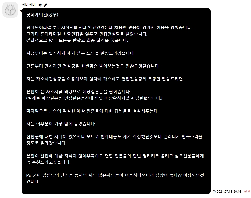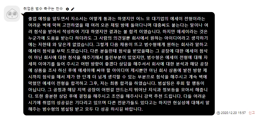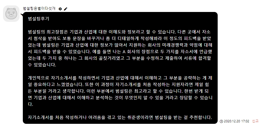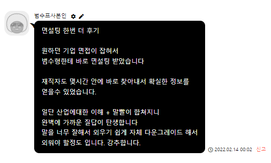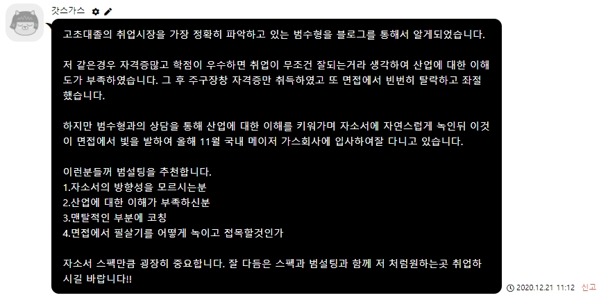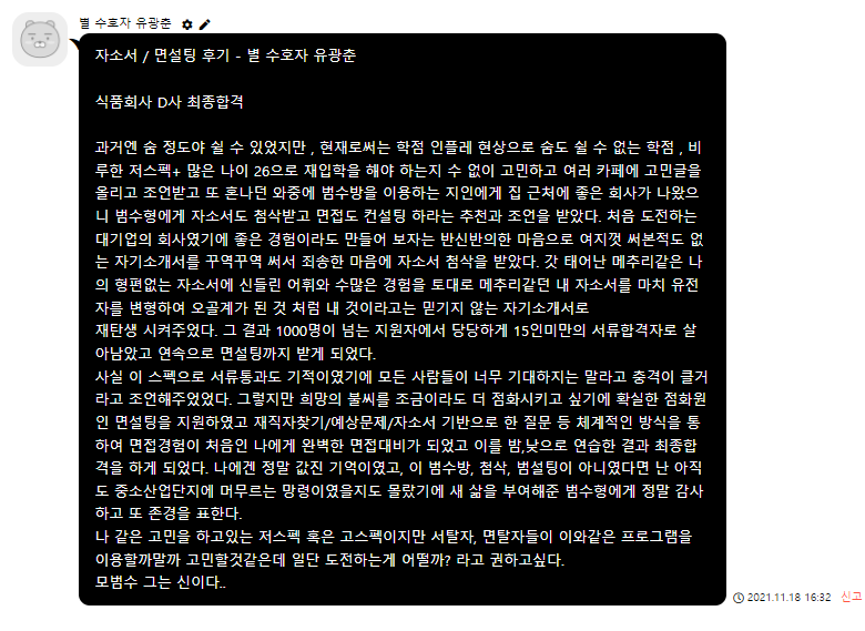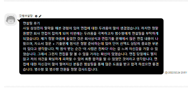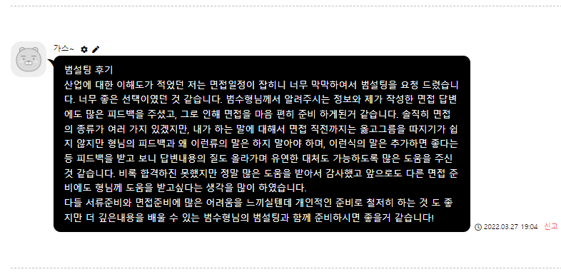 단, 범수 본인이 "면접 대답실력"을 키워줄 수는 없다.
