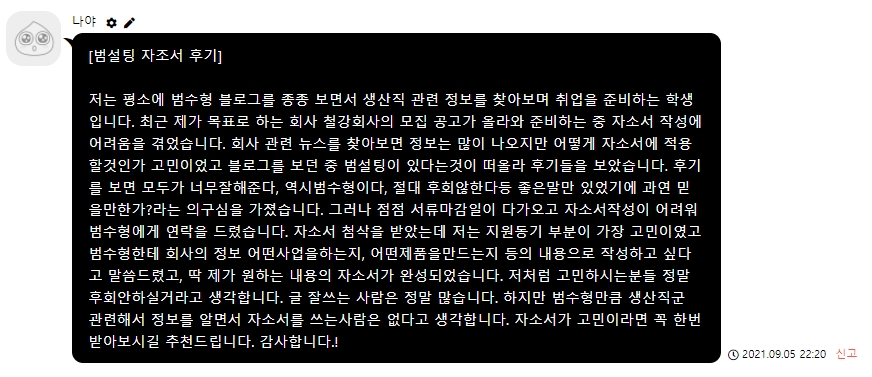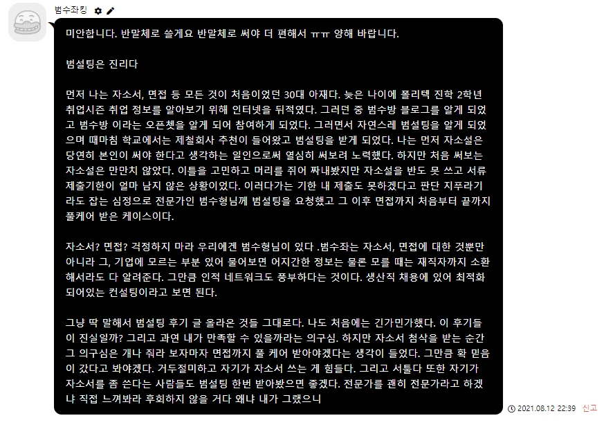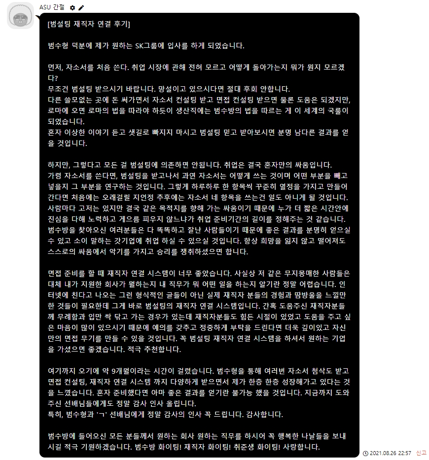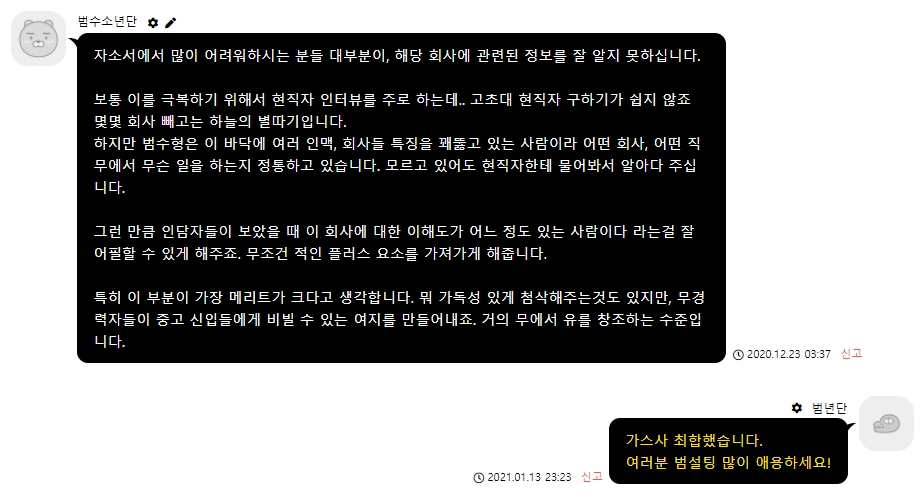 범수방은 이러한 재직자 인력풀이 모여모여 만들어진 커뮤니티이다.