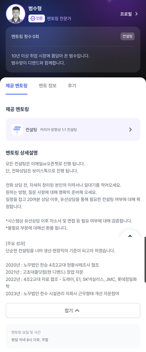 다만, 하나의 채용공고에는 상황에따라 제한된 인원만 범설팅을 받고 있다.