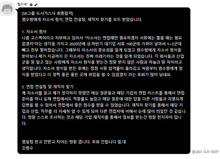 취업 준비생, 이직준비, 교대근무 및 사회생활 전반에 대해 10년간 쌓아온 내공을 전달해 드립니다.
