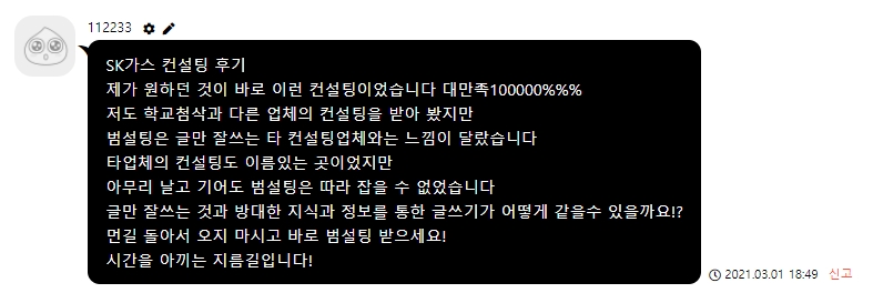여타 컨설팅과는 차별화되었다고 자부할 수 있다.