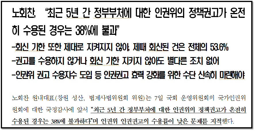실제로 '정부부처'를 상대로 내놓은 권고안 중에서도