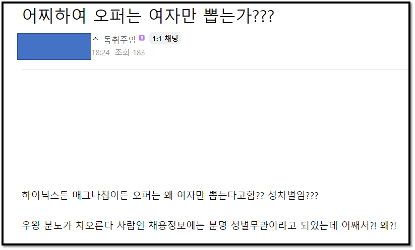 하지만, 채용공고 어디에도 남여 구분해서 정해놓지는 않았다.