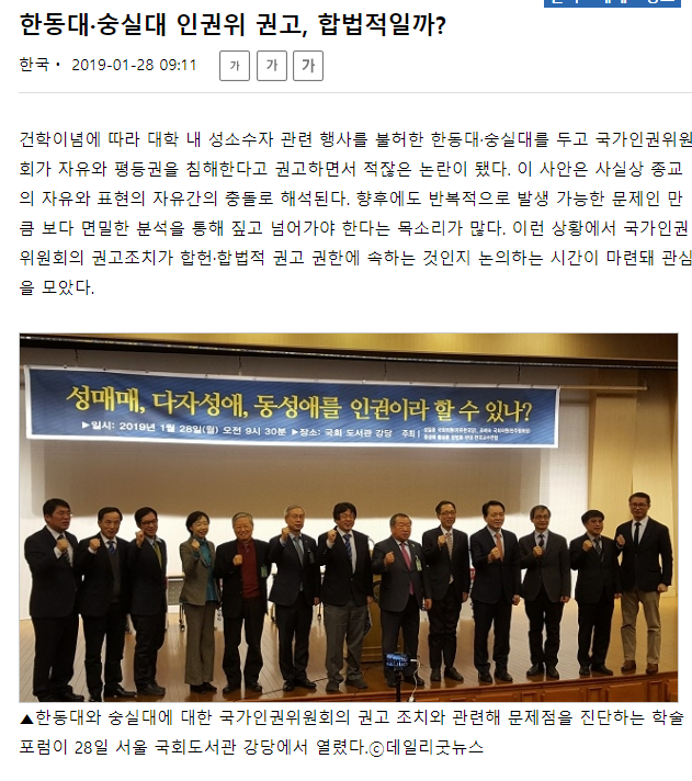 일례로 기독교 대학의 '게이, 레즈' 행사 불허에 대해