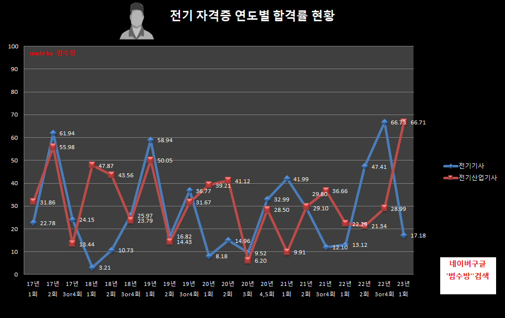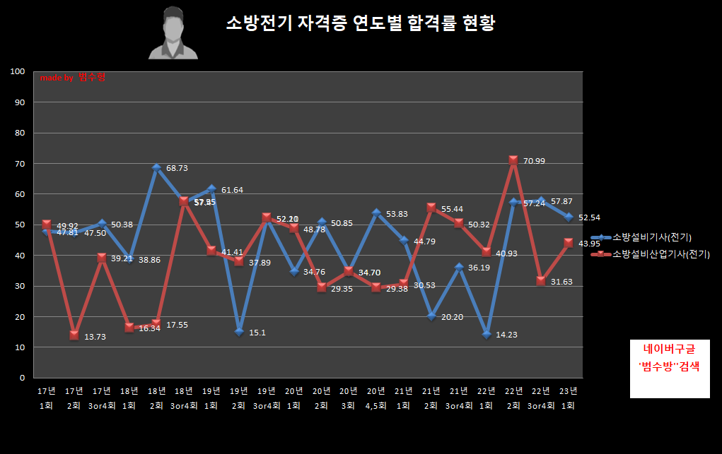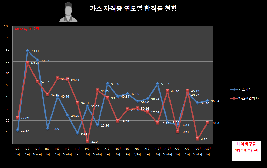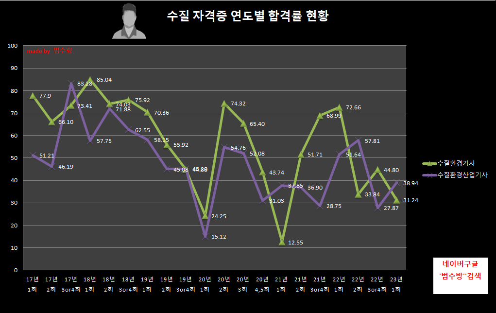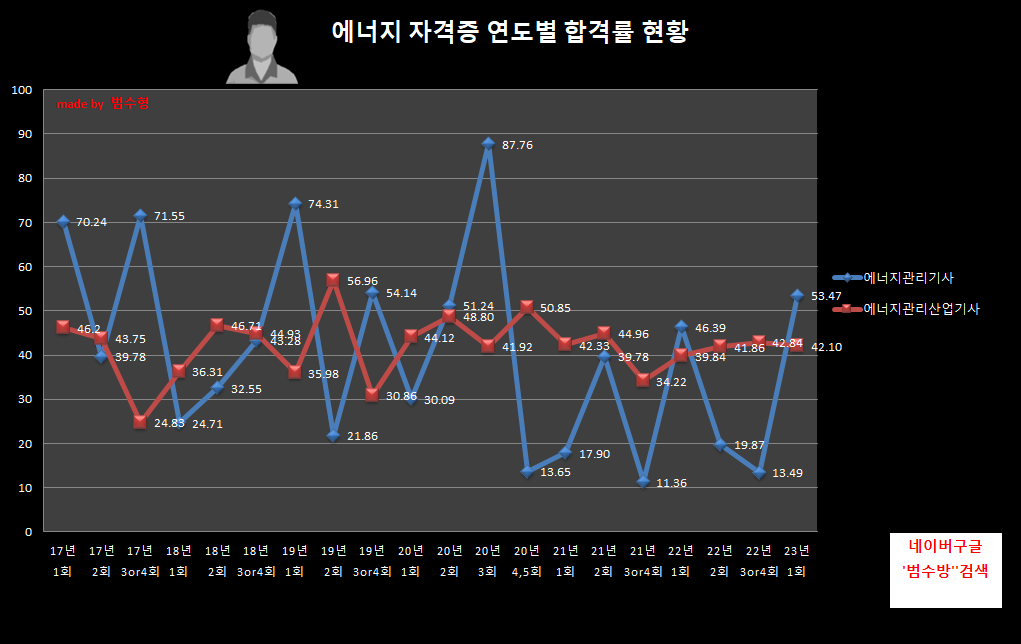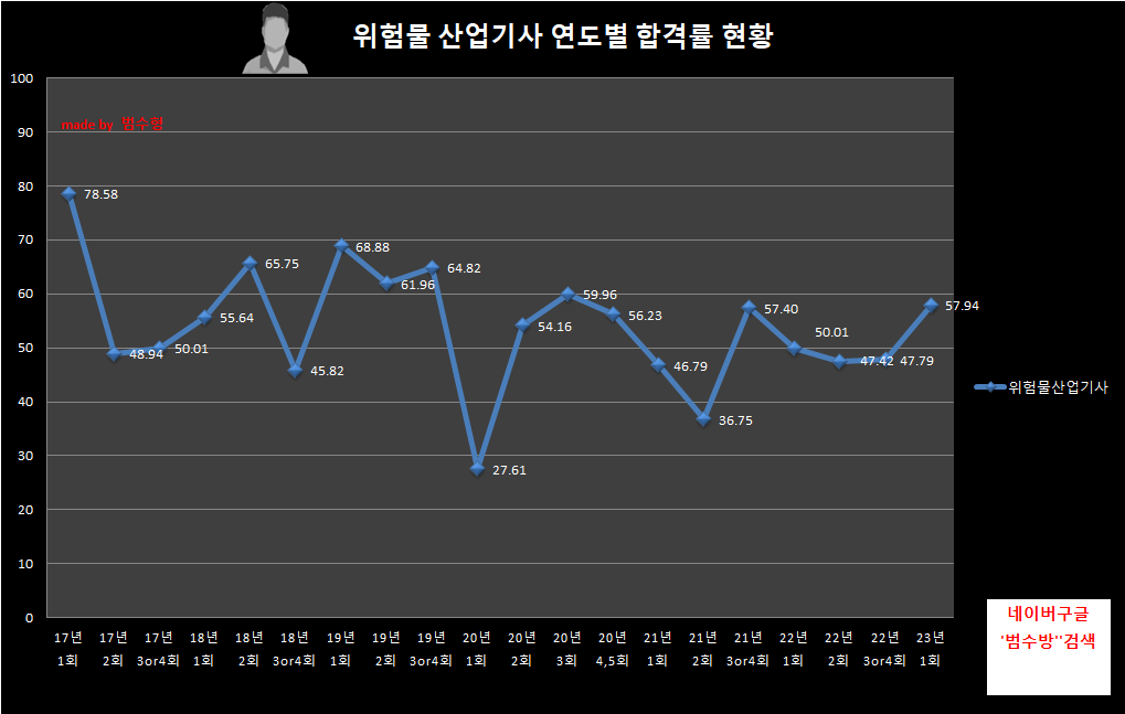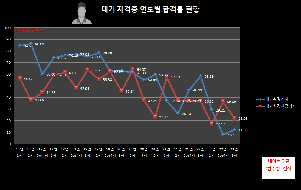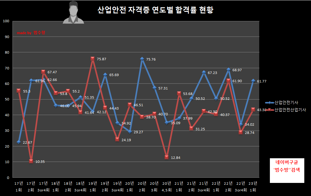같은종목의 합격률 추이를 보며