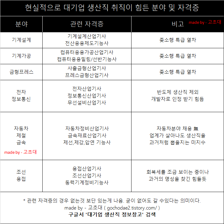 2020/03/03 - [스펙 관련/자격증 관련] - 대기업 생산직 '비선호' 분야 및 자격증을 알아보자