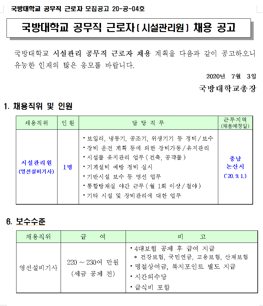 군부대 시설관리 무기계약직에 대해 알아보았다.
