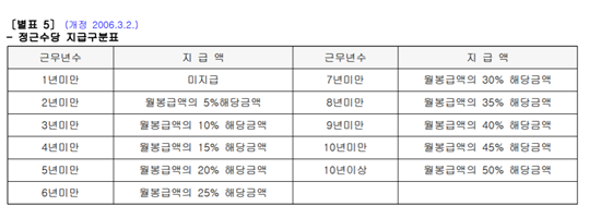 근속수당에 대한 내규이다.