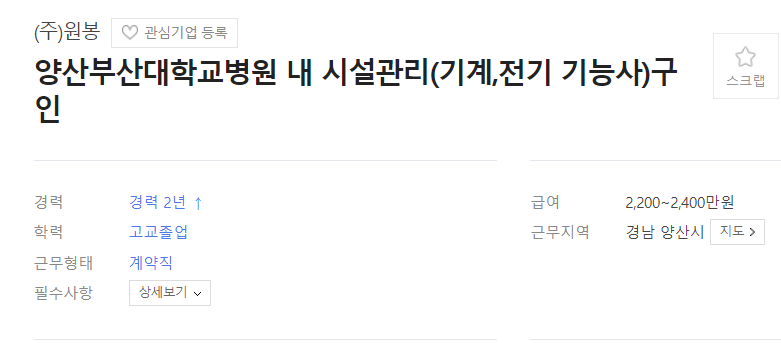 부산대학교병원 시설관리 기술직, 시설관리 업무지원직
