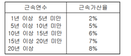 3가지의 근속관련 수당이 있었다.
