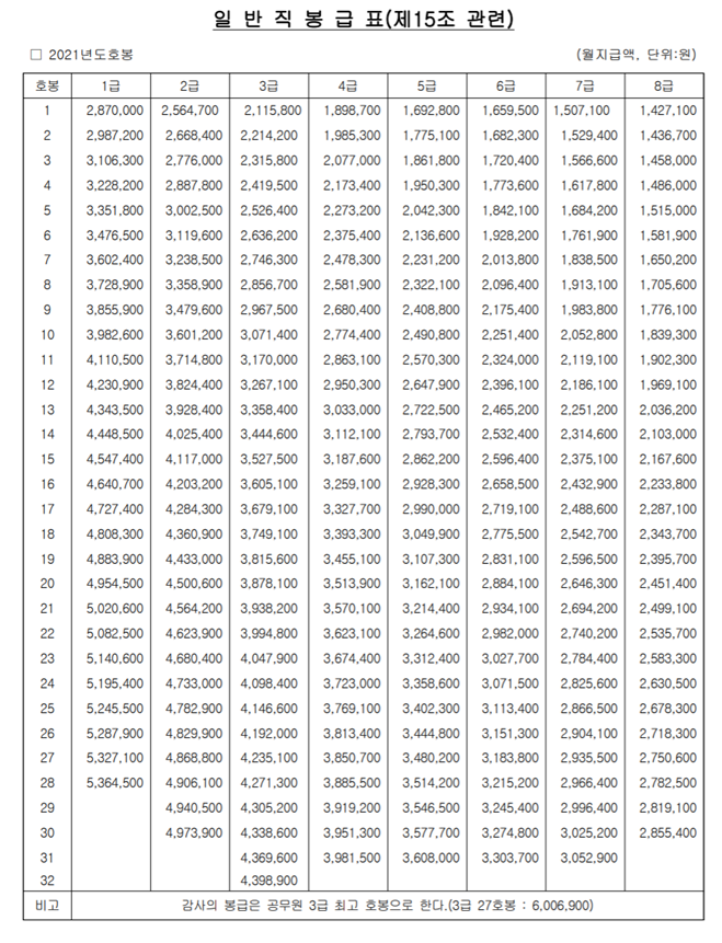 호봉표이다.