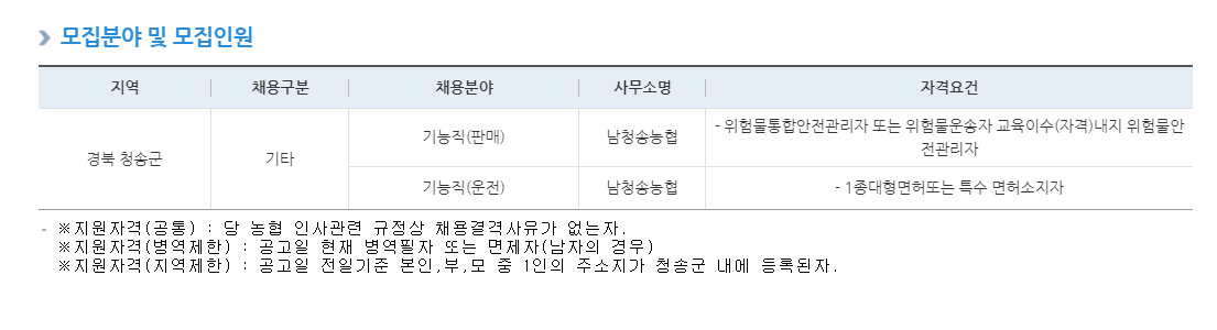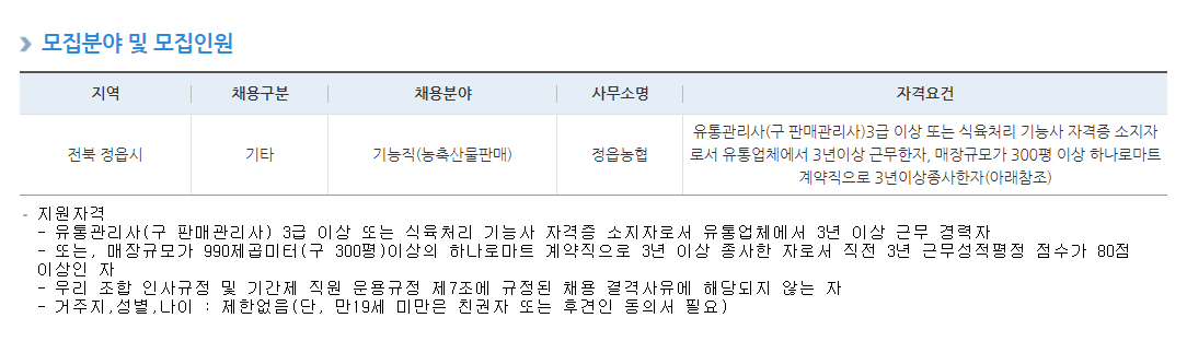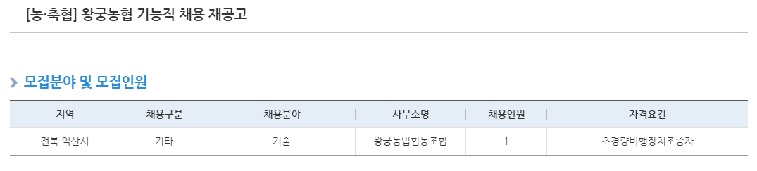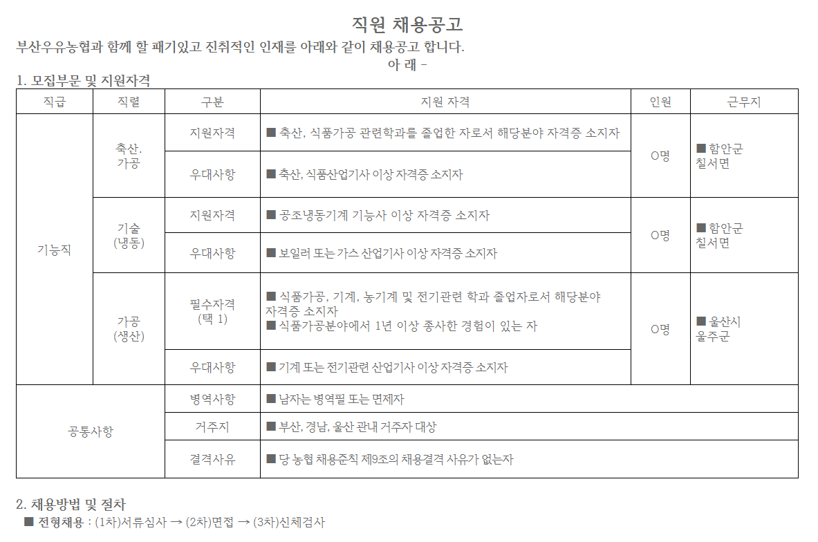 각 농협에서 수행하는 다양한 직무의 기능, 기술자 채용을 하고있다.