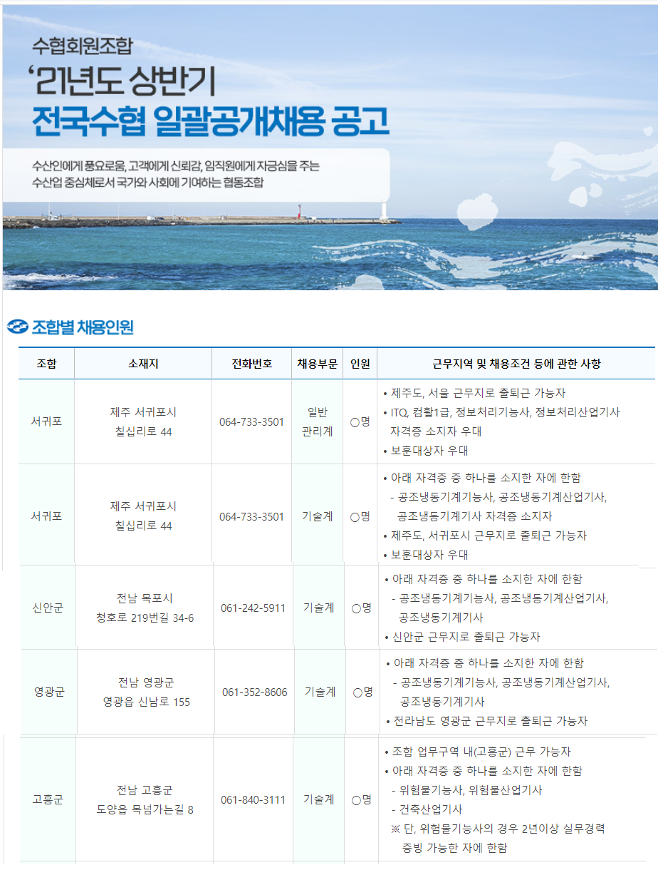 매년 지역수엽의 채용공고를 모아 한번에 합동채용을한다고 하니 참조 바란다.