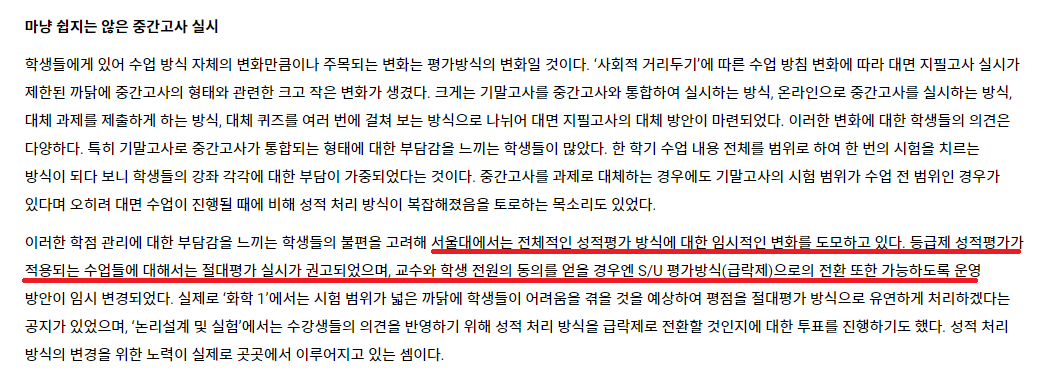 서울대 같은 힘있는 대학들이 학점운영 방식을 변화시키면
