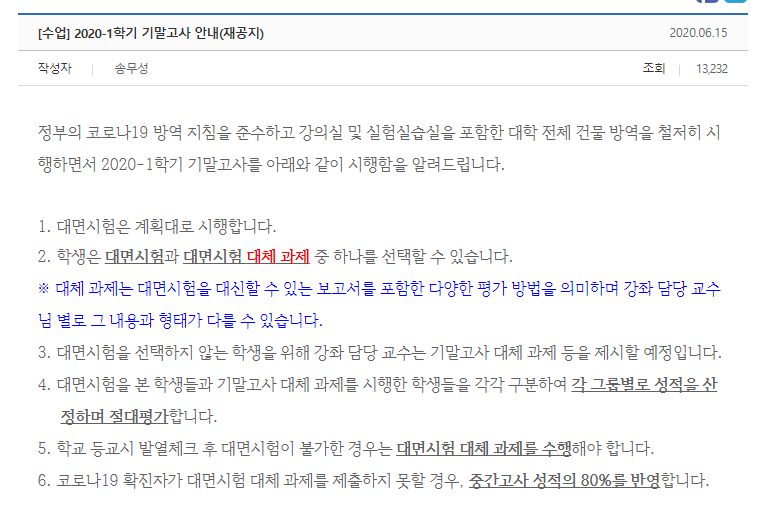 이론이라도 평가부분에선 대면이 필요한 과목 등