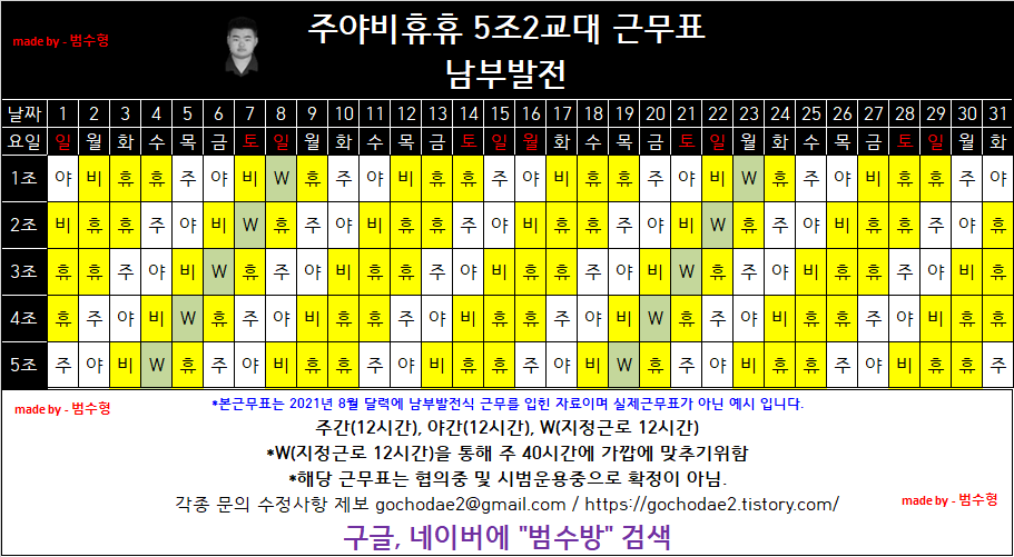 동서발전과 지난방이랑 흡사한 근무표이지만,