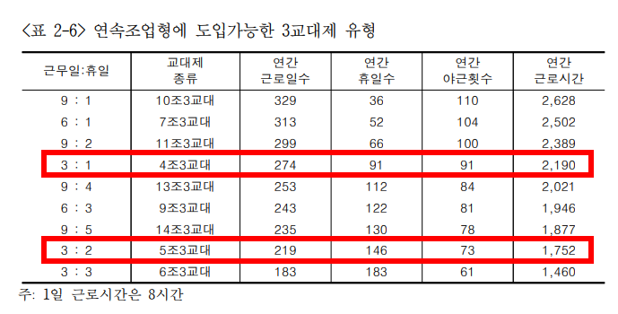 5조3교대 및 5조2교대는 현실적으로 어떤 한계가 있는지,