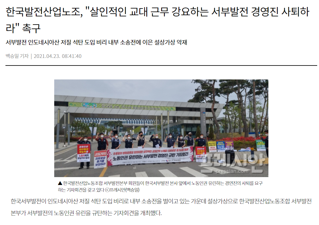 발전5개사 동서, 남동, 남부, 서부, 중부 모두 5조3교대에 대한 이러한 논란으로