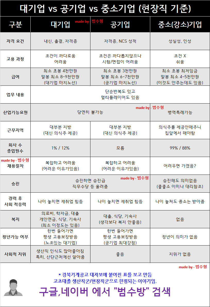 근데, 실제로 중소기업과 대기업 공기업 모두 근무해본 사람은 안다.