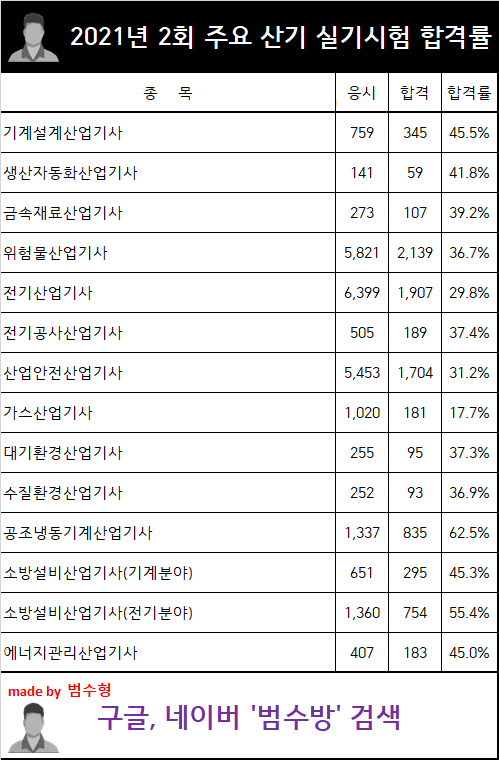 | 2021년 1회 기사산업기사 합격률 공지 (2) | 2021.06.02 |