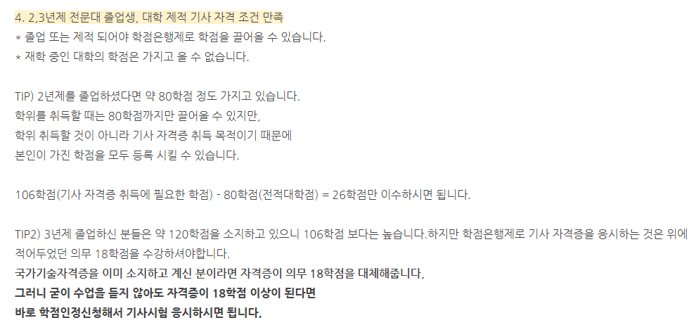 기사/산업기사 응시조건을 맞추기 위해 필요할 것이다.