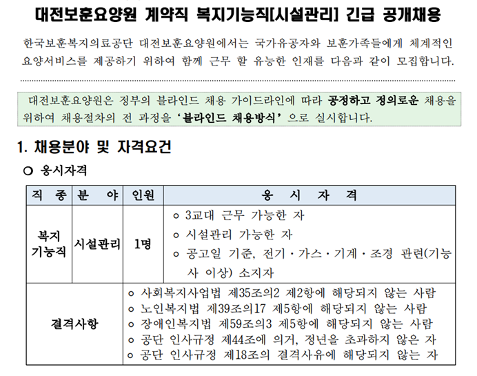 "보훈요양원" → Only 복지기능직