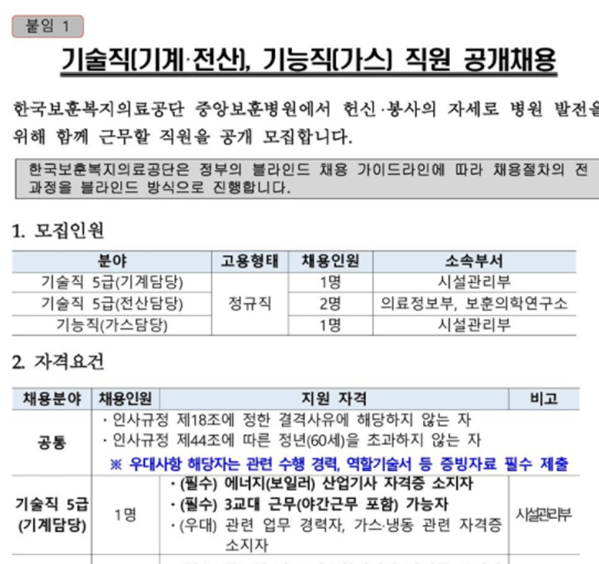 우리는 이용할일이 없었던 보훈병원의 시설관리직에 대해 써볼까한다.