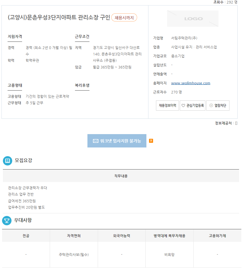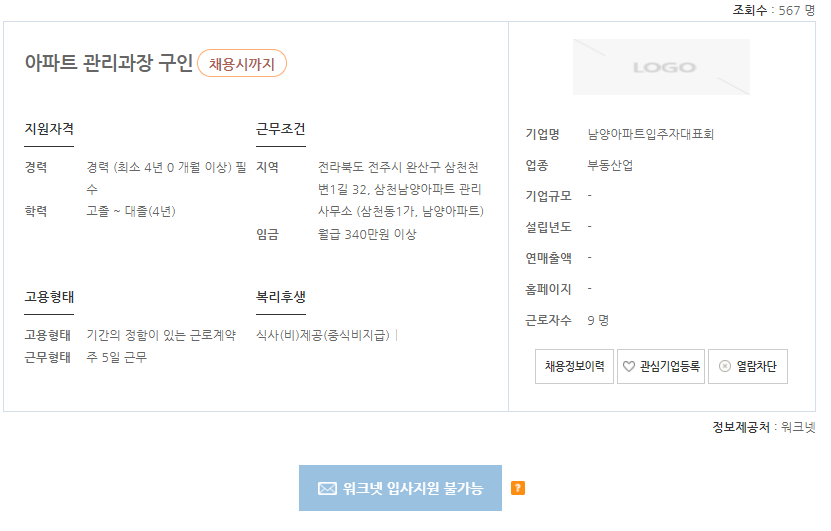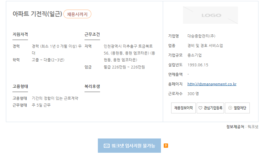 해당 아파트검색은, 워크넷을 통해 검색한것으로