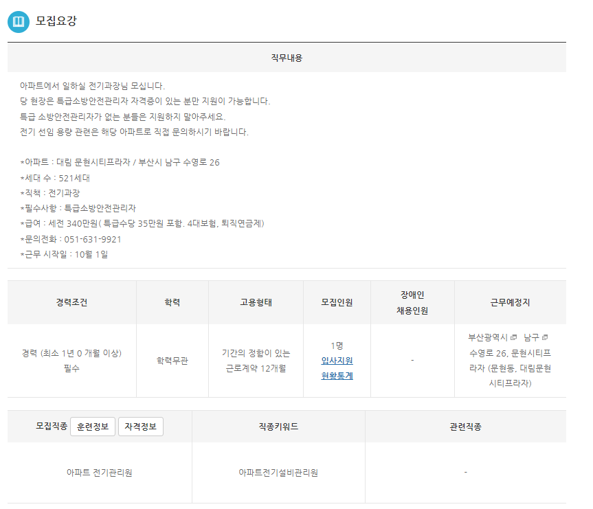아파트에따라 전기보단 기계경력을 좋아할 수도 있고