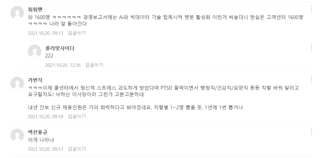 전일 발표된 건강보험공단의 1600명 고용으로 인하여