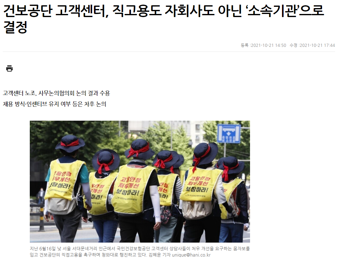 건보공단 콜센터가 위험의 외주화와 뭐가 관계가 있는지 모르겠다.