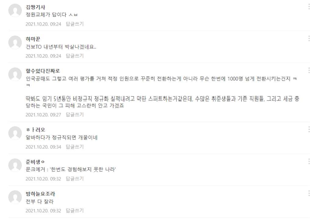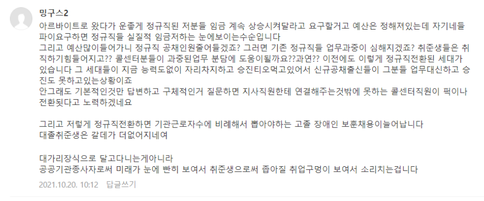 3번은 정규직이긴 하지만, 별도직군의 연봉이 형평없는 경우가 많아 오히려 전환노동자들의 불만이 매우 컷다.