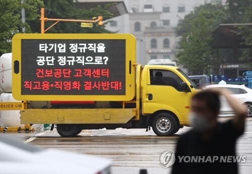 46. 이 외주업체 정규직들이 건강보험 공단 본사 직고용 정규직 전환을 요구함.