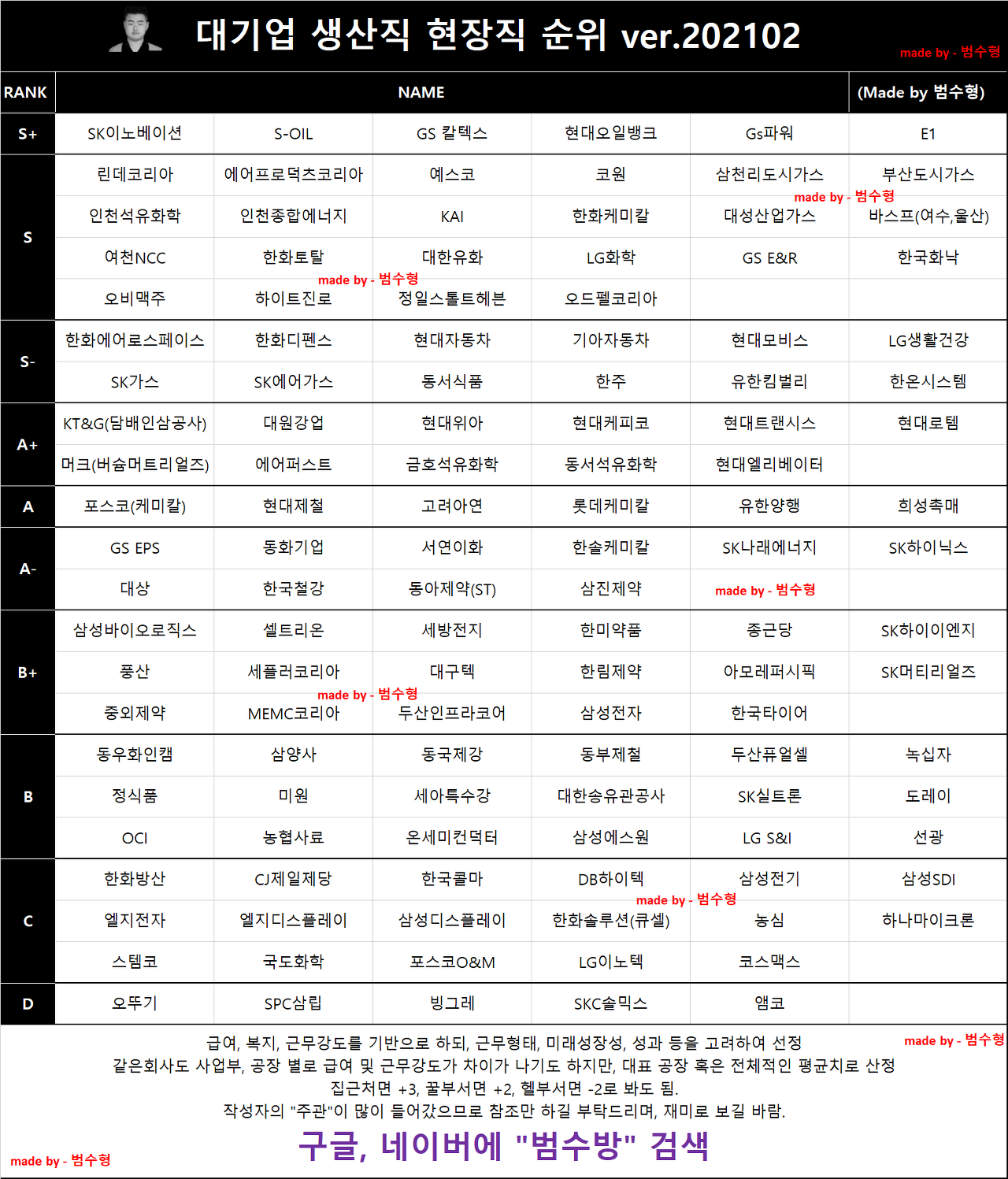 현재 티어표상 산업군에 대하여 석유화학기업처럼 많이올라와 있는 기업은 배제하며