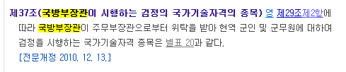 "국방부 장관이 시행하는 국가기술 자격의 종목"이란 규칙이 있다.
